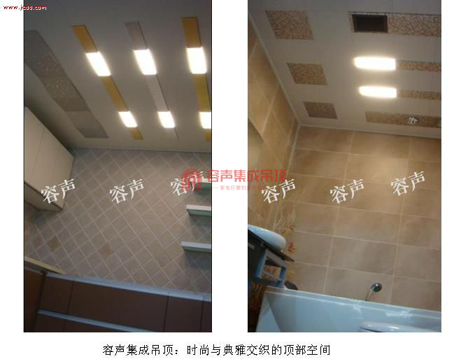 由于吊頂是大面積鋪設(shè),并是在平視的視線角度之內(nèi),如果吊頂?shù)牟牧稀D案角度、配色頂部電器的位置不當(dāng),則會(huì)使廚房衛(wèi)生間的整體檔次大打折扣,選擇一款全面的吊頂,就是選擇“頂美”的空間,這種“頂美”的享受,必然是現(xiàn)代家庭裝修的趨勢(shì)。由此,容聲吊頂應(yīng)潮流而誕生。