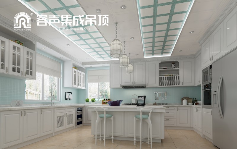 廚房裝飾,只一隅便可窺全貌。頂面藍色格子扣板的拼接,精巧物件擺放,潔白的空間,因為一抹藍色變得與眾不同。