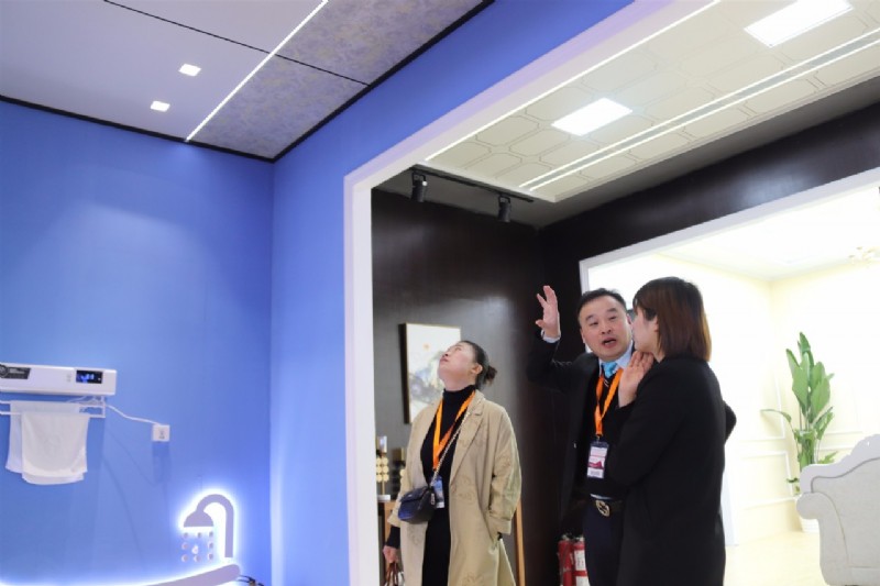 此次北京建博會容聲集成吊頂品牌隆重亮相,位于國際展覽中心新館E1館-A01展位,位置非常顯眼,展廳總面積達414平方米。整個展廳以容聲藍為主色調,彰顯簡約大氣之風,給人一種輕松舒適的視覺體驗。