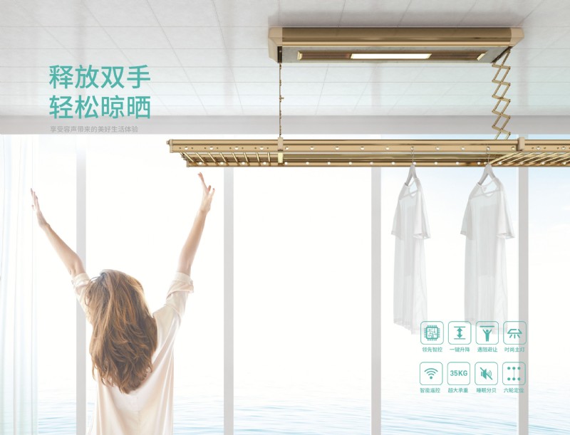 從小,媽媽就肩負著全家人的衣物清洗重任。浸泡,搓洗,晾曬,收納,媽媽總是在默默的付出。盡管現在有了自動洗衣機,在一定程度上得到了緩解,但是晾曬問題還普遍存在。晾衣桿太高,晾曬懸掛時可能會閃到腰,陰雨天衣服不易干,老舊房屋陽臺燈光昏暗,晾曬看不清等一系列問題困擾著媽媽,容聲智能晾衣機,超大晾曬空間,升降隨心,更有環(huán)保LED和恒溫發(fā)熱出風幫你呵護陪伴辛勞的母親。