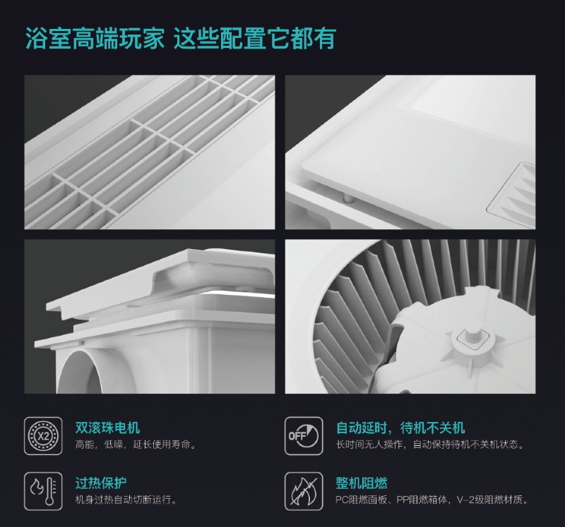 240m3/h極速換氣,有氧呼吸。雙螺旋式風道,換氣量顯著增加,同時有效去除甲醛,改善室內空氣環境。告別異味、水蒸氣,讓浴室不再沉悶,享受一場深林有氧SPA,清清爽爽洗個澡!