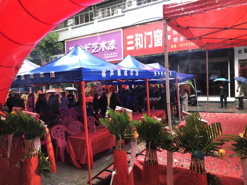 10點(diǎn)18分,在現(xiàn)場(chǎng)主持人的宣布下,容聲集成吊頂洪江專賣店正式開業(yè)!現(xiàn)場(chǎng)禮炮齊鳴,熱鬧非凡,就是雨再大,也阻擋不了人們的熱切觀看。