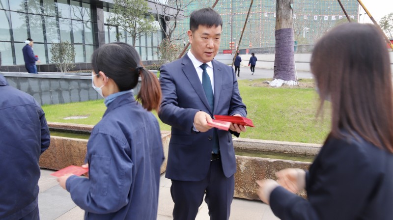 董事長派發(fā)大吉大利的開門紅包,寓意新的一年紅紅火火——