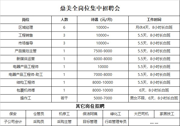 本次大型集中招聘會預招聘30余人。錄取后統一培訓,快速上崗,大量的新同事、新戰友一起互幫互助、學習進步,避免單人入職情況下面對新工作、新環境的無所適從。