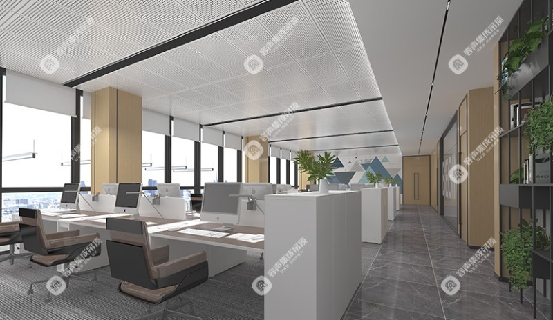 方通層次分明,結構通透,具有優良的通風排氣效果,便于對頂部的消防噴淋、照明設備等進行安裝和維護,適用于現代簡約風格的開放式公共區域。
