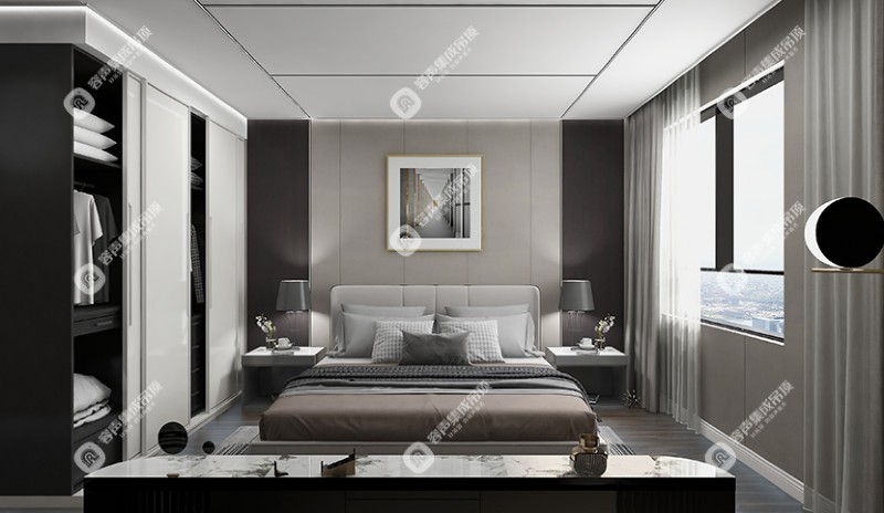 今天為大家?guī)淼氖浅刂莸臉影宸啃Ч麍D,以無膠大板為集成吊頂,蜂巢板為背景墻,打造出簡約時(shí)尚,又不失精致典雅的輕奢現(xiàn)代風(fēng)格——