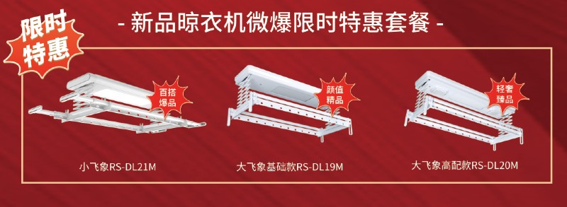 最后要向大家隆重介紹本次雙十一新上市的容聲新品晾衣機!他們分別是大飛象基礎款、大飛象高配款和小飛象,這三款新品晾衣機不僅從功能、尺寸上完美滿足了各地、各戶型的陽臺晾曬需求,更擁有時下最受年輕人歡迎的極簡烤漆白設計,顏值在線,晾曬無限!擁有了它,你家的陽臺就是整幢樓里最靚的仔!