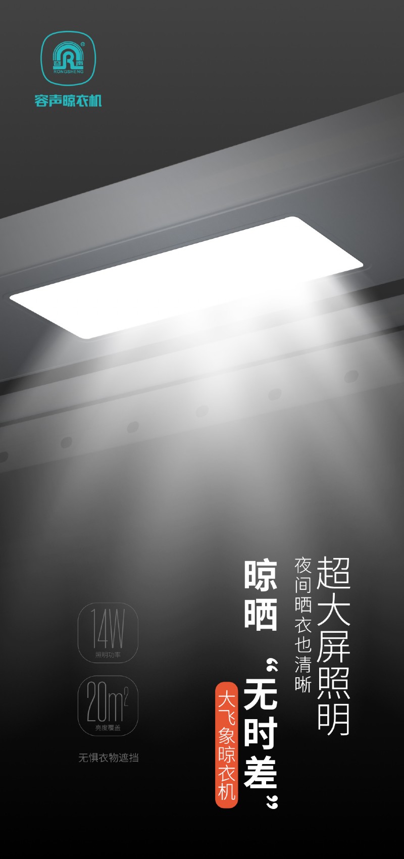 首當(dāng)其沖的自然是“照明”功能——晾衣機(jī)自帶照明,不僅可以省下一臺照明燈的費(fèi)用,也更方便白天上班晚上才有空的上班族們夜間洗衣晾曬。