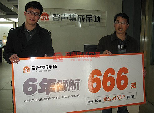 2012年3月29日,容聲集成吊頂6年領航”老客戶曬歷程得666元返現金”大型感恩老客戶活動已圓滿完成了第十一批幸運老客戶的頒獎。讓我們一起來分享此次部分幸運老客戶喜悅的心情吧!