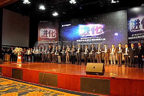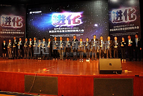 隨后,大會現場開啟了頒獎環節,市場口碑獎、五行樣板店獎、2013年度優秀經銷商獎、2013年度卓越經銷商獎分別頒發到經銷商手中,這不僅是經銷商的殊榮和獎勵,同時也是容聲集成吊頂的品牌榮譽。