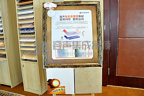 在本次容聲集成吊頂新品發布會上,引人關注的必定是新品發布。在會場內搭建的專門展廳內,容聲集成吊頂新品對經銷商們部分展示,其實非常惹眼的一款產品,是容聲集成吊頂首創的“金屬漆板材”——作為集成吊頂行業首創高端汽車級金屬漆工藝,革命性突破傳統4大工藝,從今開始,金屬漆技術將成為區別于傳統的輥涂、氧化、覆膜、印刷4大傳統工藝的第五種創新新工藝。據了解,金屬漆又叫金屬閃光漆,是目前流行的一種汽車面漆。在它的漆基中加有微細的鋁粒,光線射到鋁粒上后,又被鋁粒透過氣膜反射出來。因此,看上去好像金屬在閃閃發光一樣。漆膜堅韌、附著力強、具有極強的抗紫外線、耐腐蝕性、高豐滿度,能全面提高涂層的使用壽命和自潔性。